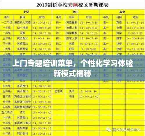 随着科技的进步和教育的变革,传统的培训方式已经不能满足现代人的学习需求,越来越多的人开始追求更为便捷、高效、个性化的学习方式,为此,上门专题培训应运而生,而与之相伴的菜单式学习更是为个性化学习体验开创了新的篇章。